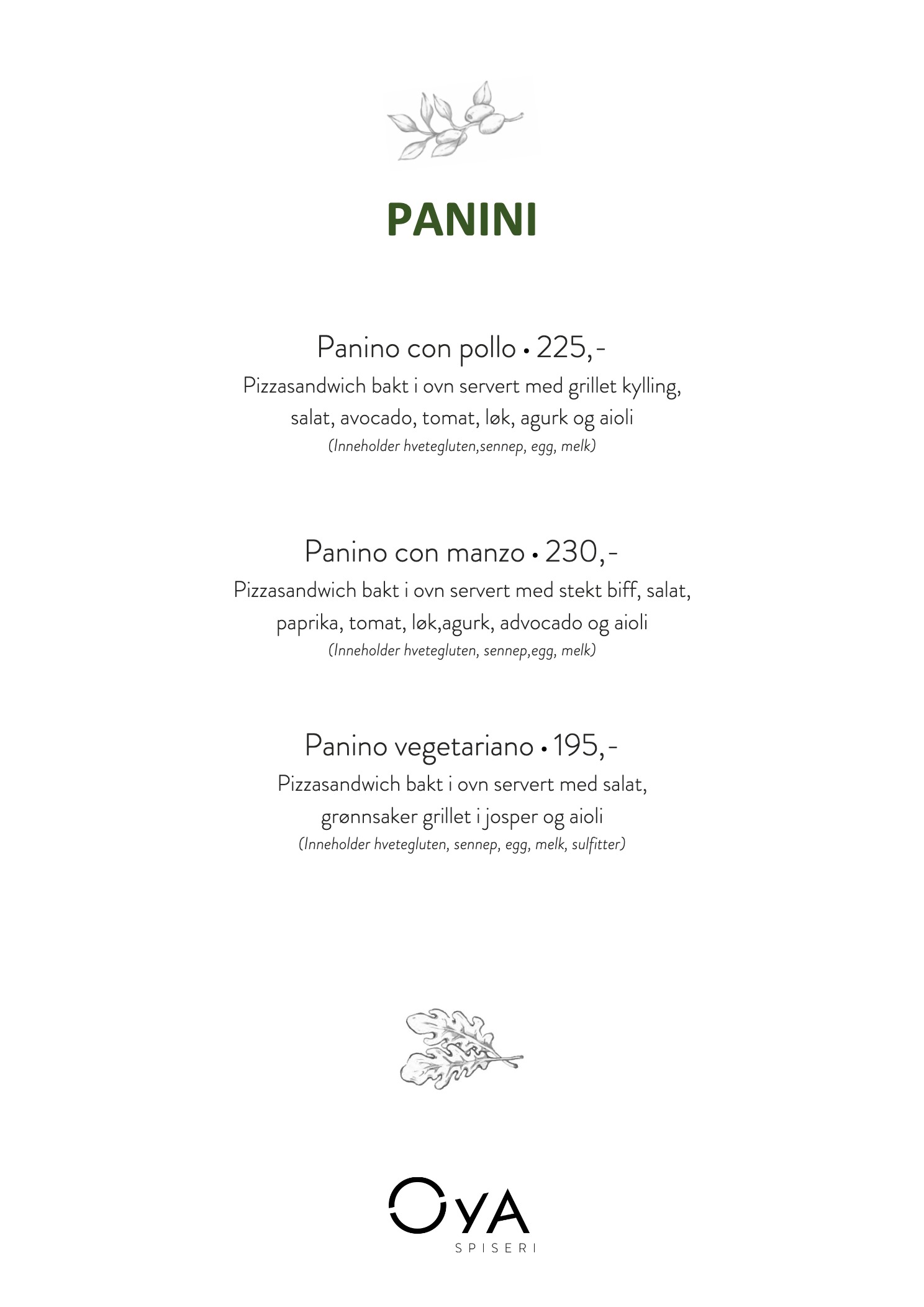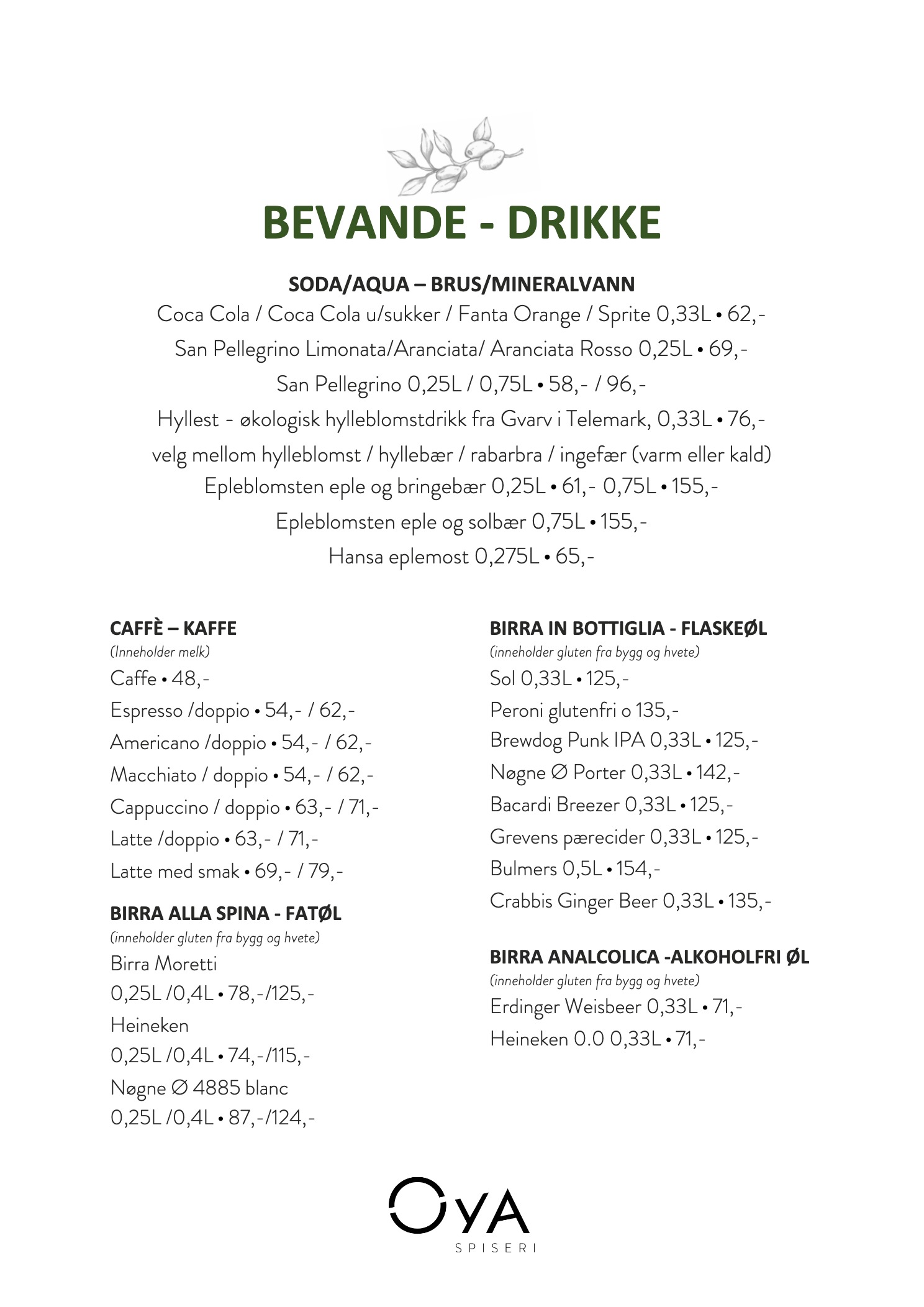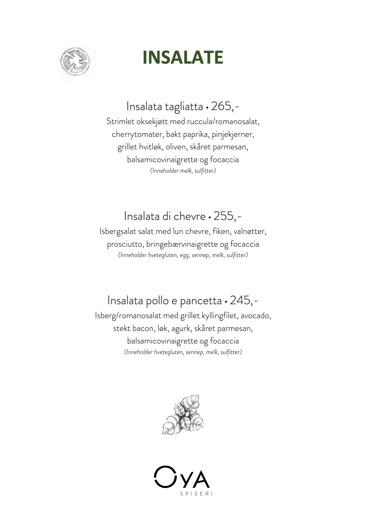 Menyer for Øya SpiseriHer finner du våre aktuelle menyer. Se bilder under eller last ned pdf.MenyTavleretter JulLunsjmenyDrikkeLast ned meny i pdf format her. Last ned meny i pdf her og dessertmeny her. Last ned lunsjmeny i pdf format her.